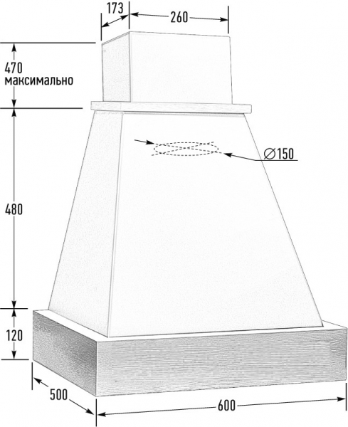 Купол вытяжки выполнен из металла толщиной 7 мм, окрашен порошковой краской.