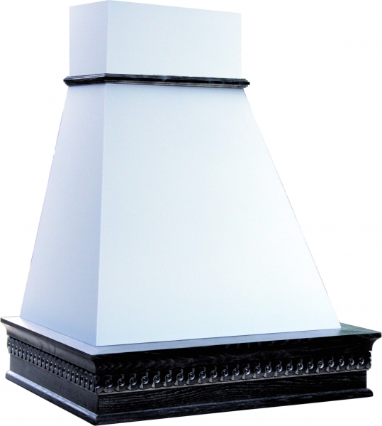 На центральном фото представлена вытяжка в цвете купола белый муар, деревянное обрамление из дуба