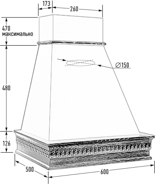 Купол вытяжки выполнен из металла толщиной 7 мм, окрашен порошковой краской.