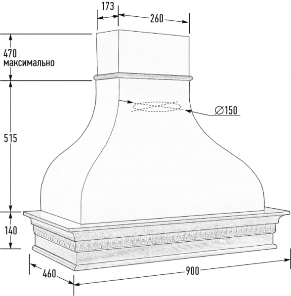 Купол вытяжки выполнен из ППУ ( пенополиуретан - негорючий плотный материал с высокой звукоизоляцией, срок службы 50 лет)