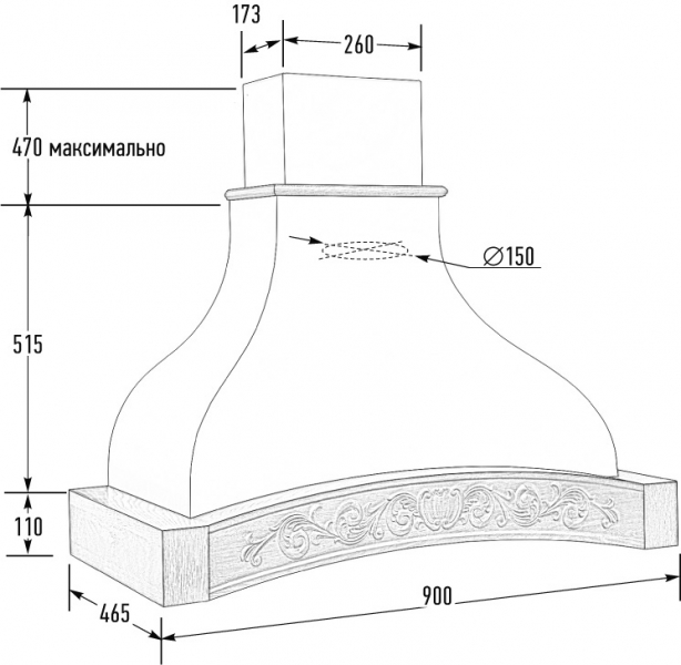 Купол вытяжки выполнен из ППУ ( пенополиуретан - негорючий плотный материал с высокой звукоизоляцией, срок службы 50 лет)
