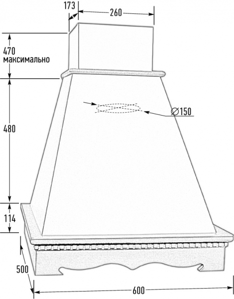 Купол вытяжки выполнен из металла толщиной 7 мм, окрашен порошковой краской.