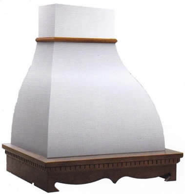 На фото представлена вытяжка в цвете купола белый муар, деревянное обрамление из Бука цвет Ника Ноче.