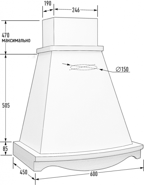 Купол вытяжки выполнен из металла толщиной 7 мм, окрашен порошковой краской.