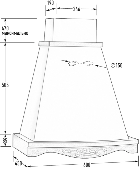 Купол вытяжки выполнен из металла толщиной 7 мм, окрашен порошковой краской.