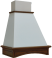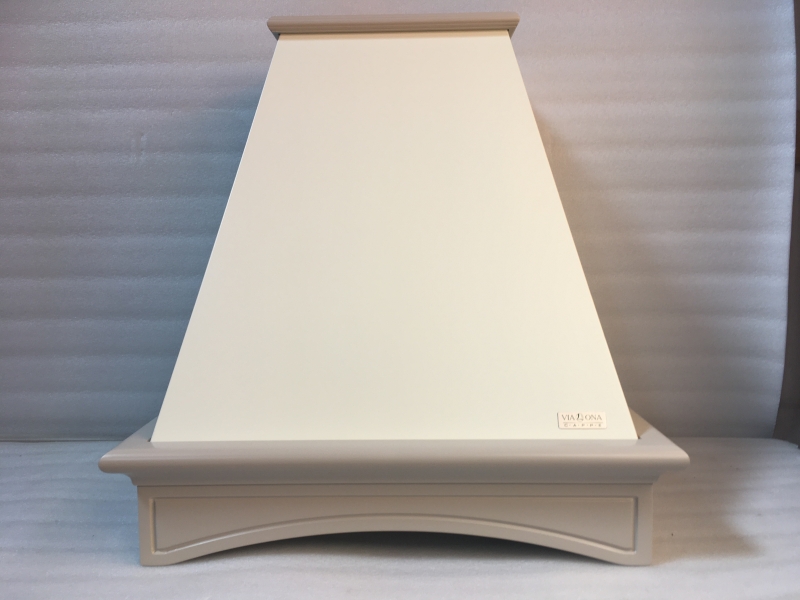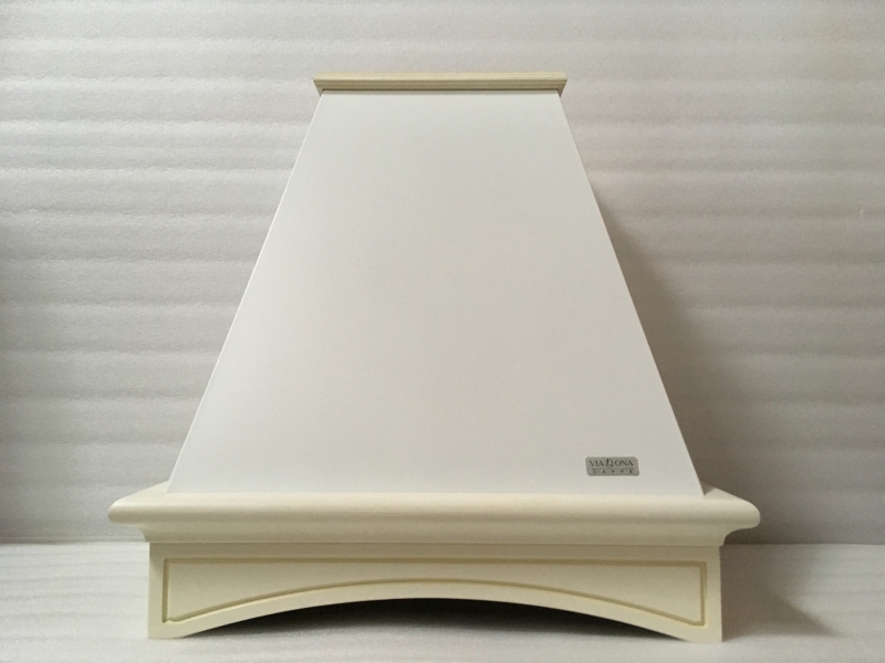 На центральном фото представлена вытяжка в цвете купола белый муар, деревянное обрамление