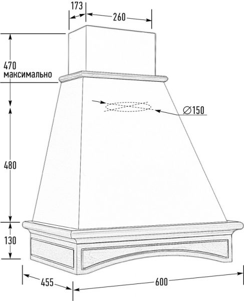 Купол вытяжки выполнен из металла толщиной 7 мм, окрашен порошковой краской.