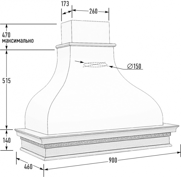 Купол вытяжки выполнен из ППУ ( пенополиуретан - негорючий плотный материал с высокой звукоизоляцией, срок службы 50 лет)