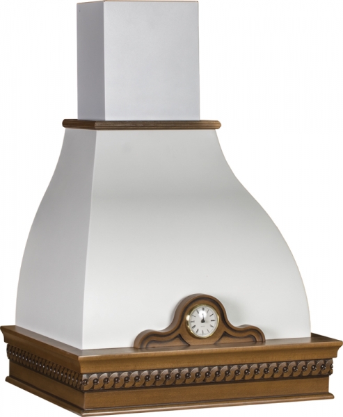 На центральном фото представлена вытяжка в цвете RAL 6020, деревянное обрамление из дуба цвет Бора фундук.