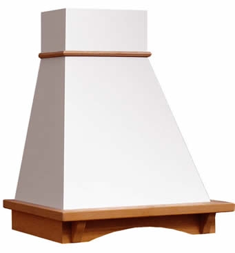 На центральном фото представлена вытяжка в цвете купола слоновая кость, деревянное обрамление из бука