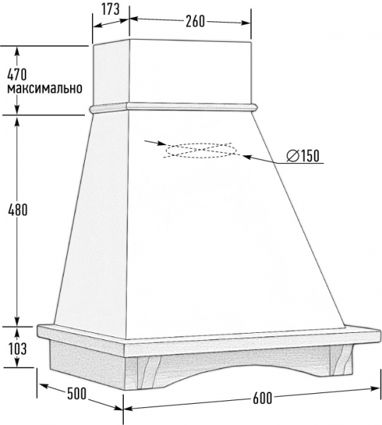 Купол вытяжки выполнен из металла толщиной 7 мм, окрашен порошковой краской.